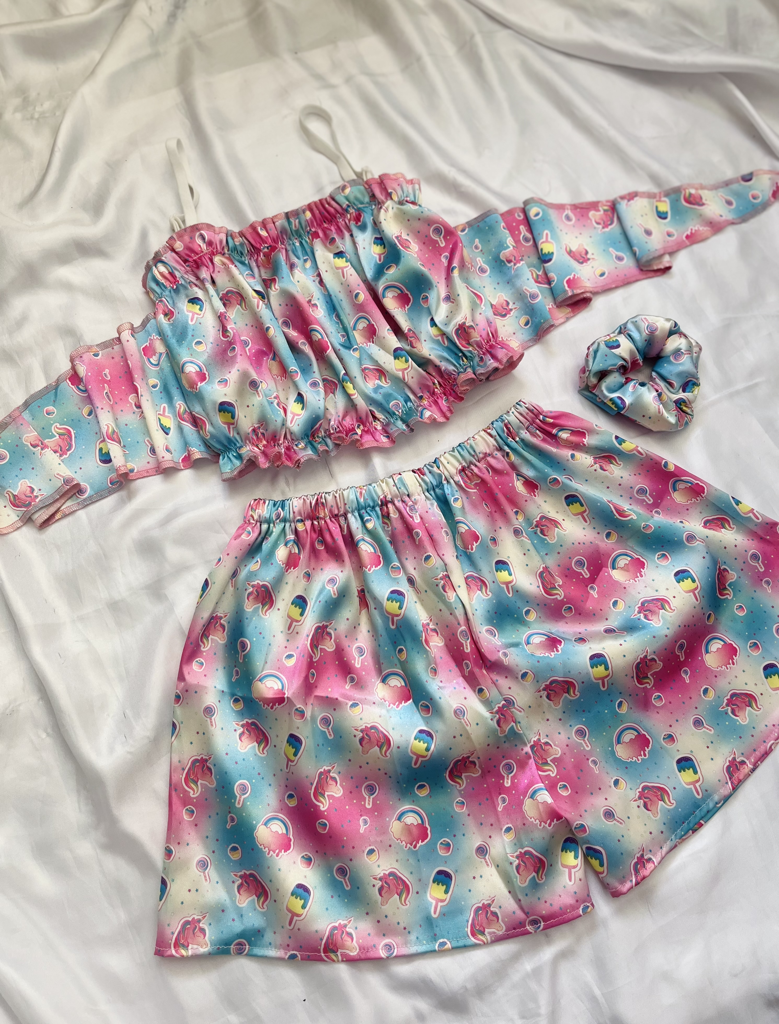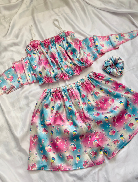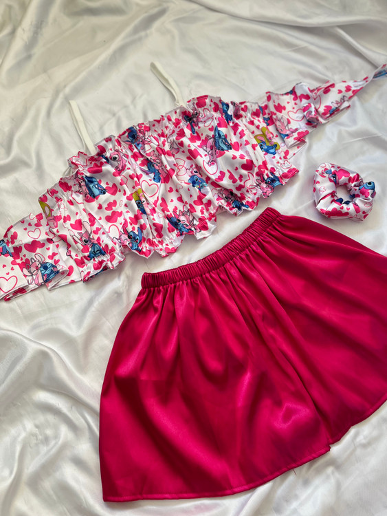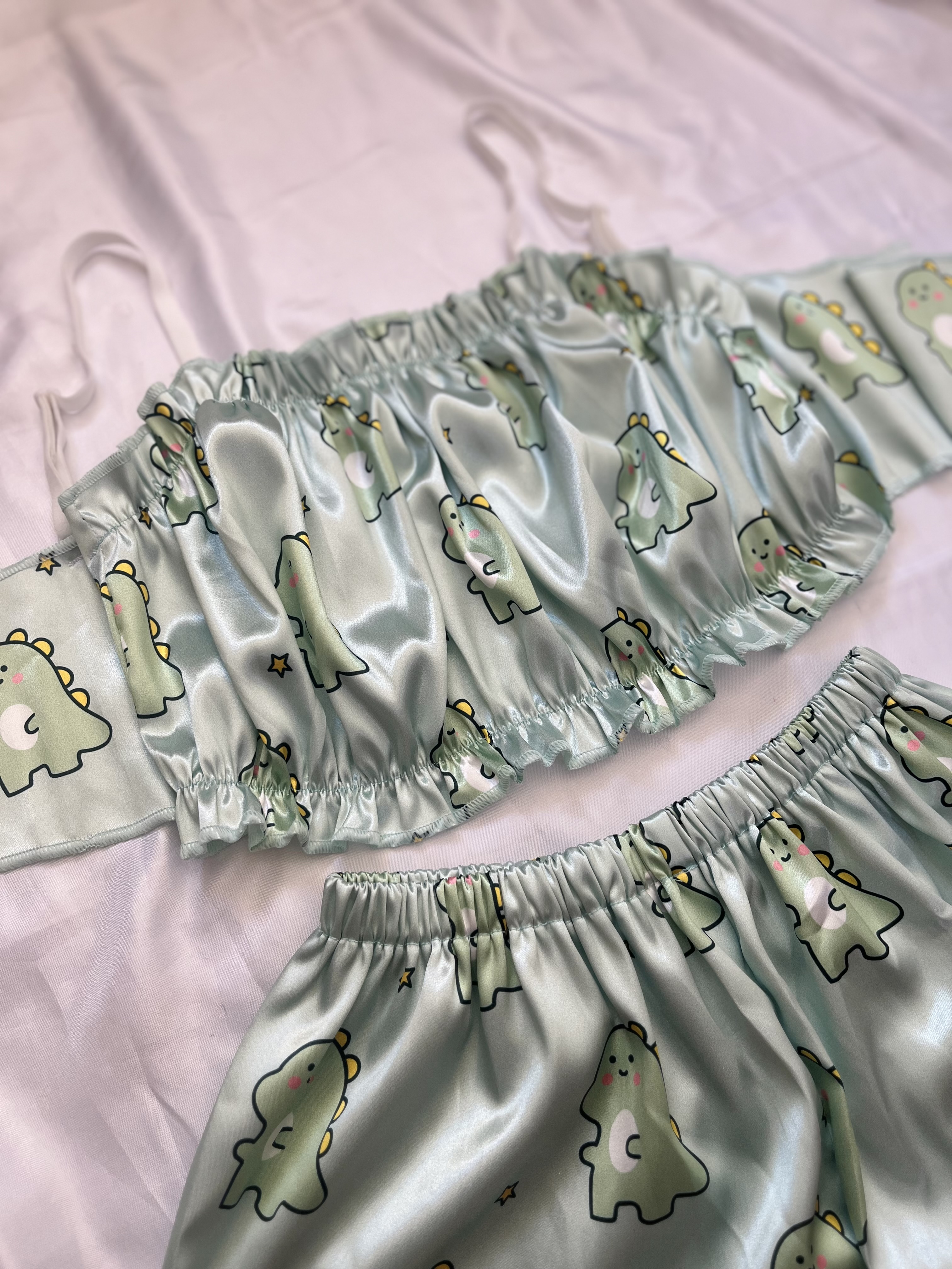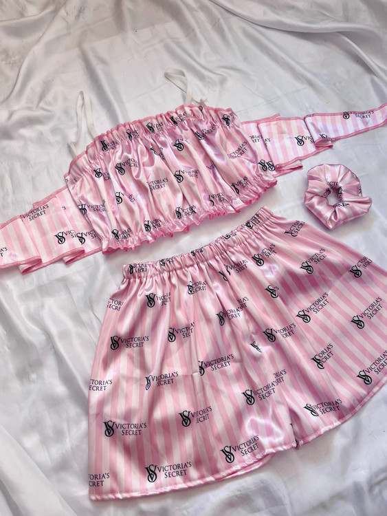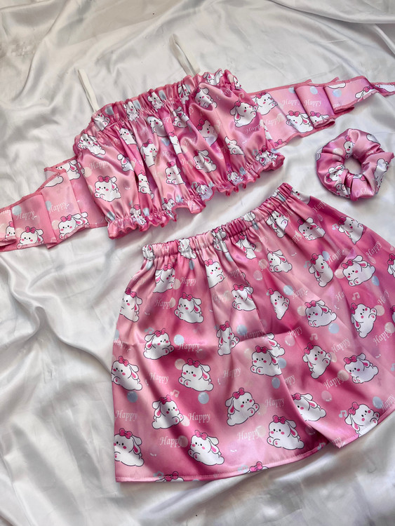 ست تاپ و شورتک ساتن گره ای